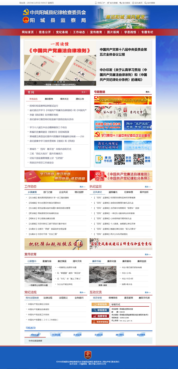 欄,以文字、圖片、視頻等多種形態(tài)呈現,力求把網站打造成為陽城縣紀檢監(jiān)察信息公開、宣傳教育、成果展示、網絡舉報、問責曝光的主渠道主陣地。